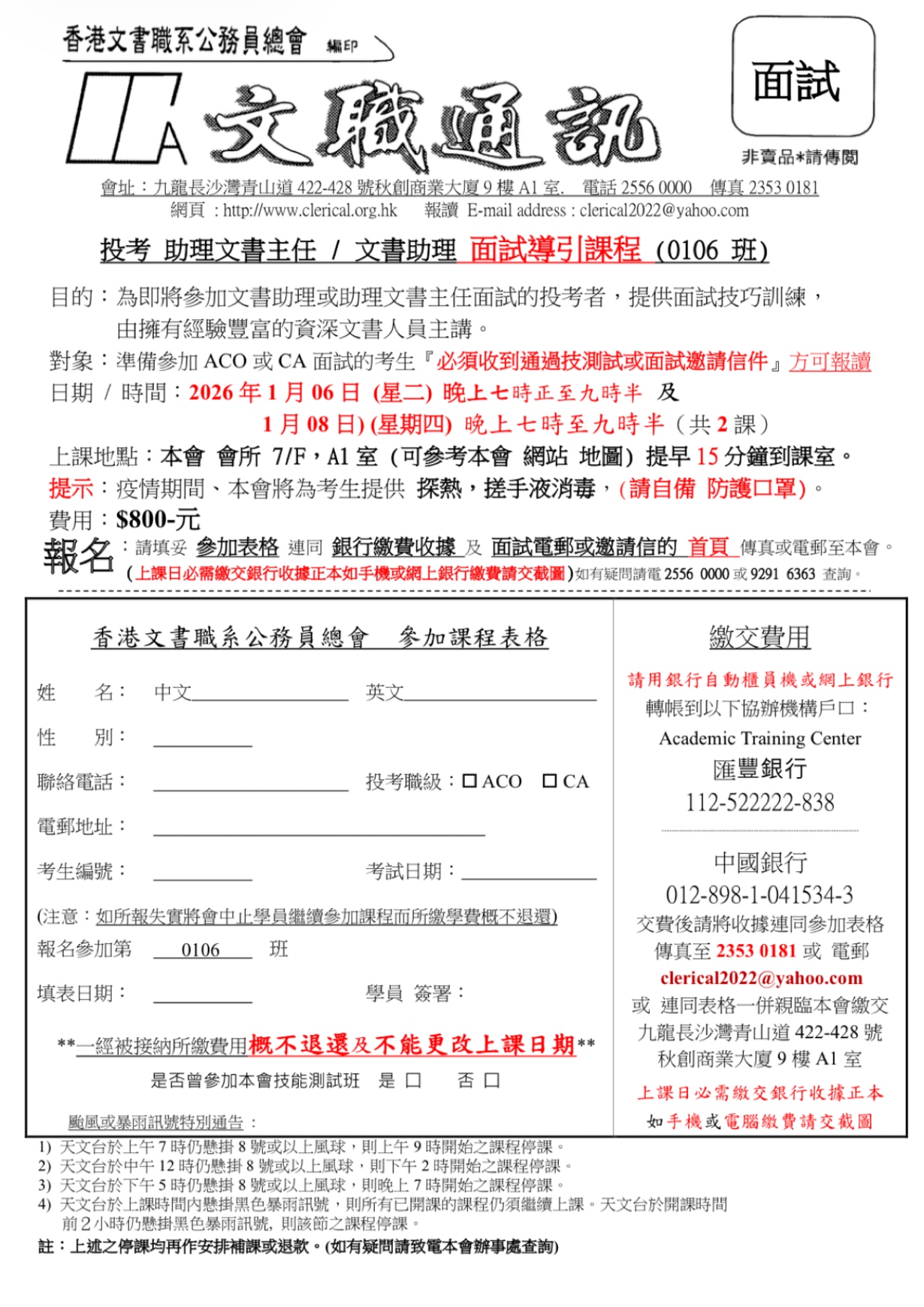 助理文書主任(ACO)/ 文書助理(CA)面試導引課程(0106班)
